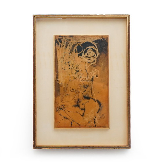 The title “The Oddities of the Old Countess” hints at the enigmatic nature of the subject: a barely outlined female figure, immersed in a rarefied and visionary composition. The forms merge with the background through a fluid and branching ink technique, evoking an aesthetic of the unconscious and metamorphosis.