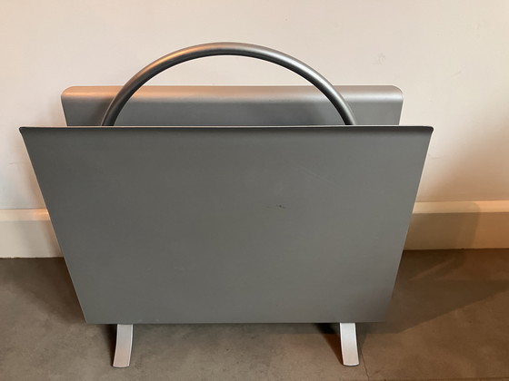 Gispen magazine rack made of gray lacquered steel in very good condition. Dutch Originals Design. Designed by W.H. Gispen.