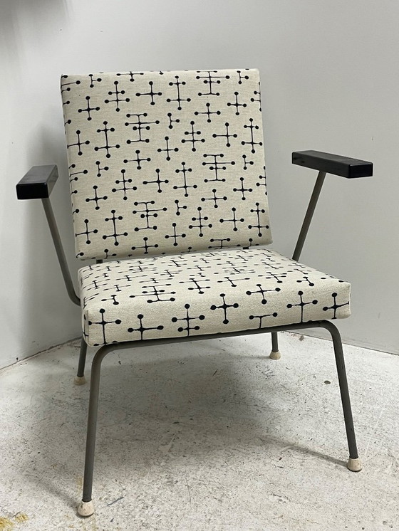 This charming chair by Gispen is a real eye-catcher. The steel frame has some slight signs of use, but that is exactly what adds to its authentic, original look. We deliberately chose not to repaint the frame; character is part of the deal.