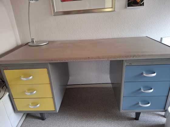 Old Gispen desk. Top damaged (due to use). Available after the first week of May. Heavy! Located on the first floor (bring it down yourself).