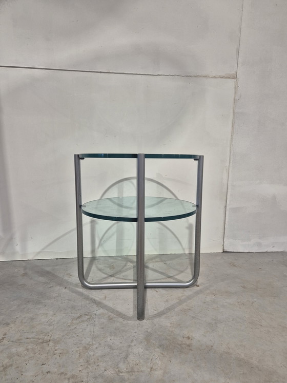 Gispen Today GT423 side table. 60 cm high. Diameter: 55 cm. Some light scratches on the bottom glass plate. Otherwise in good condition.