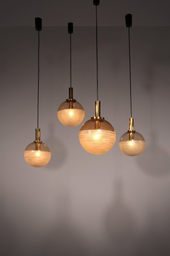 Discover the allure of lighting with a story through our Vintage Glashütte Limburg Hanging Lamp Set. Crafted in Germany during the 1960s,