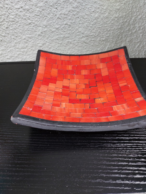 This beautiful handmade glass bowl is a unique piece that embodies the traditional Turkish mosaic style. The bowl is decorated with vibrant red mosaic tiles that form a striking pattern. Perfect as a decorative object or as a functional bowl for fruit or other items. The bowl exudes bohemian charm and is a great addition to any interior.