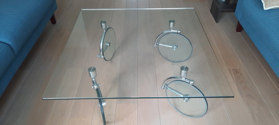 Distinctive and unique glass coffee table 'Wheels' by Kare-design for sale.
