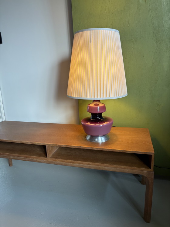 Beautiful vintage mouth-blown opal glass purple table lamp in perfect condition.
