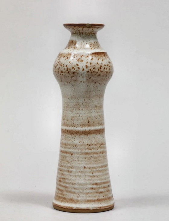This piece is distinguished by its slender and balanced form, typical of Pouchain's work, as well as by its natural speckled glaze with warm hues, characteristic of Dieulefit productions from the 1960s and 70s.