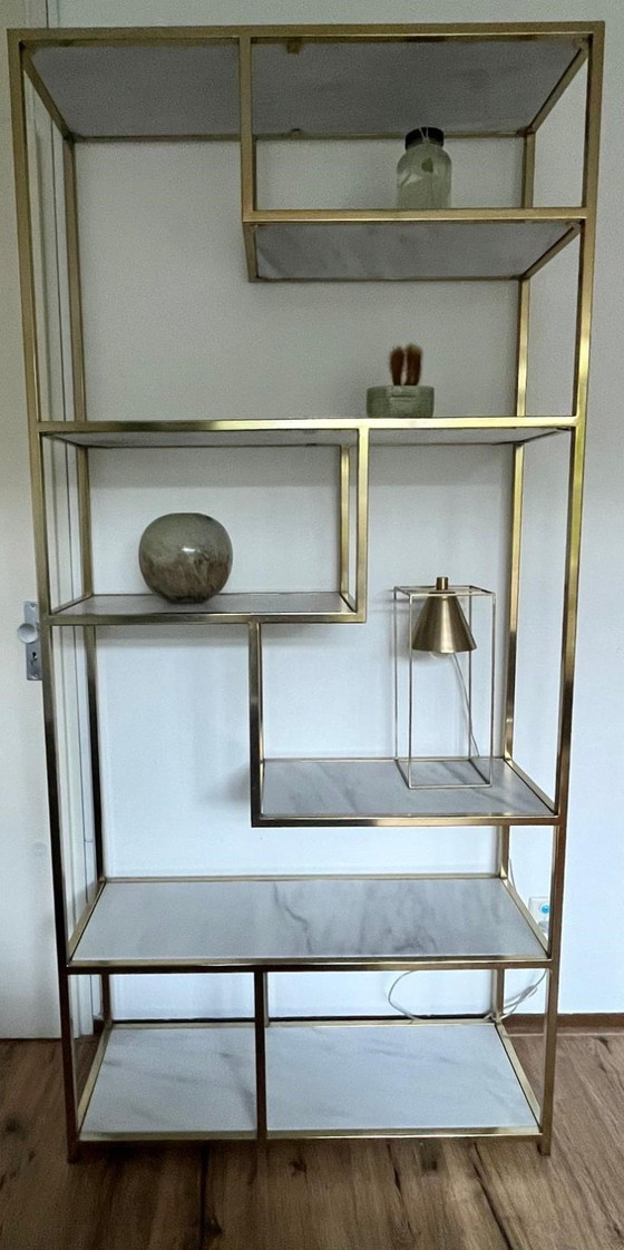 ConditionVery goodColorsWhite, GoldMaterialBrass, MarbleNumber of items1BrandFurnifiedFirst ownerYesHeight219 cmWidth106 cmDepth40 cm