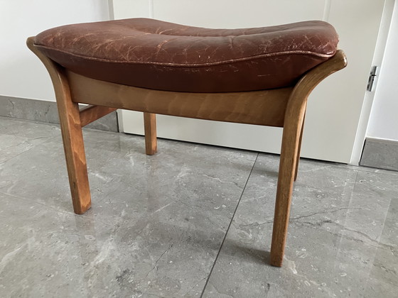 Swedish Göte Möbler Nassjo leather footrest/stool from circa 1970 Dimensions: Width 59cm Depth 46cm Height approximately 40cm