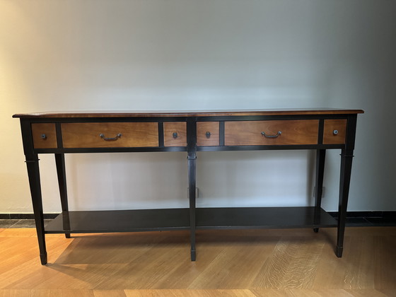 Ideal as a console table in the hallway, dining room, or living room, for example, for displaying decorative objects, lighting, or bar accessories.