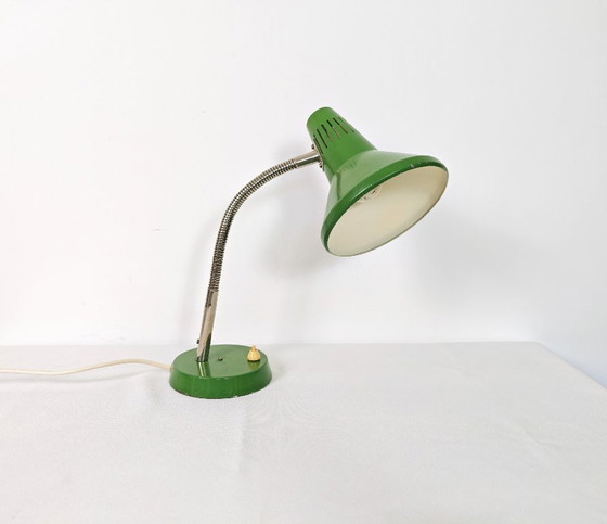Green vintage industrial table lamp with a flexible neck, made in Yugoslavia in the 1970s. In nearly perfect vintage condition.