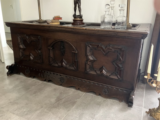 ConditionVery goodColorsBrownMaterialWoodNumber of items1Height72 cmWidth177 cmDepth65 cmSigns of usageDents