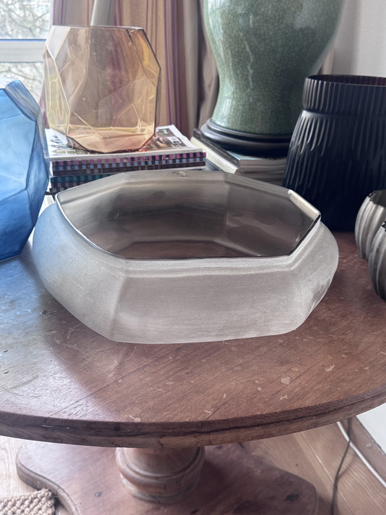 Smoky grey bowl vase - matte frosted on the outside Height: 11 cm Opening: 37/40 cm Pickup preferred in The Hague