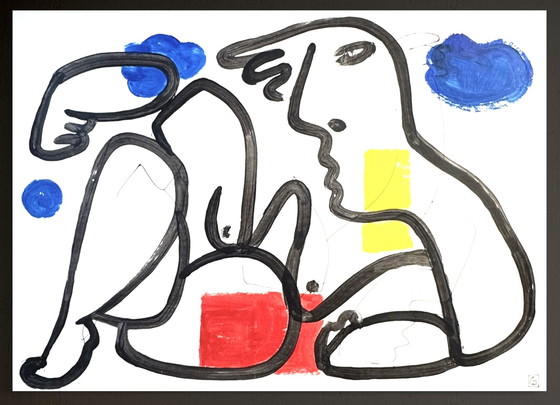 This construction evokes, with restraint, certain major explorations of 20th-century modernism. The formal synthesis of the body and the strength of the contour recall Picasso's explorations of fragmentation and simplification of the motif. The use of bold, structuring colors may also echo the chromatic research of Fernand Léger.