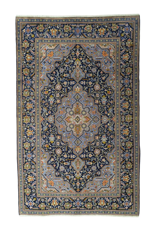 This Keshan oriental rug is a true masterpiece of craftsmanship. With its detailed design, which includes classic floral patterns and a magnificent medallion-like centerpiece, this rug is an eye-catcher for any home. The soft blues and oranges harmonize perfectly with the vibrant greens, allowing the rug to shine in both traditional and modern interiors. Special features: Dimensions: 355 x 224 cm Material: High-quality wool for a luxurious feel and long-lasting durability Design: Traditional Keshan design with a central medallion and floral patterns Colors: Blue, orange, green and other earthy tones to create a warm and elegant ambience. As a wholesaler, we ensure that all rugs are professionally washed and refurbished to preserve their beauty and ensure a long life. Secure shipping to ensure your rug arrives undamaged and quickly. NR: 57147