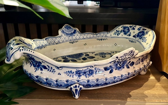 Experience the timeless elegance of this hand-painted Delft Blue serving bowl from the esteemed Royal Delft (De Porceleyne Fles). This exquisite piece showcases intricate floral designs and delicate brushwork, embodying the rich tradition of Dutch craftsmanship.