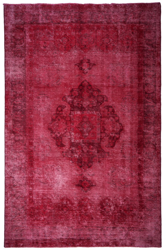 Our vintage rugs, which we find in Iran, come from used Persian rugs that continue their journey after being redesigned and redesigned. Designers based in Iran recycle old handmade Persian rugs as raw material for their art. Each rug is carefully selected and undergoes a unique washing and color-neutralizing process. In a creative process, portions of the pile are removed or reduced to create a new design. The rug is then re-dyed in captivating new colors and patterns. The result is a unique and modern, individual work of art. Naturally, these rugs are vintage, old, and used, and their condition varies accordingly, which is part of the product.