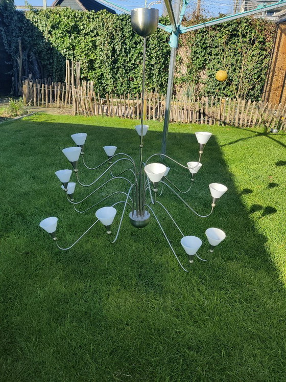 Bring a touch of modern elegance into your home with this Harco Loor ceiling chandelier. This beautiful lamp combines style and functionality with its sleek metal arms and elegant glass shades. Perfect for illuminating your dining room or living room, this chandelier adds a sophisticated look to any space. The built-in LED lighting provides a bright and energy-efficient glow that brings your interior to life. Don't miss this opportunity to enhance your home with a piece of design by Harco Loor!