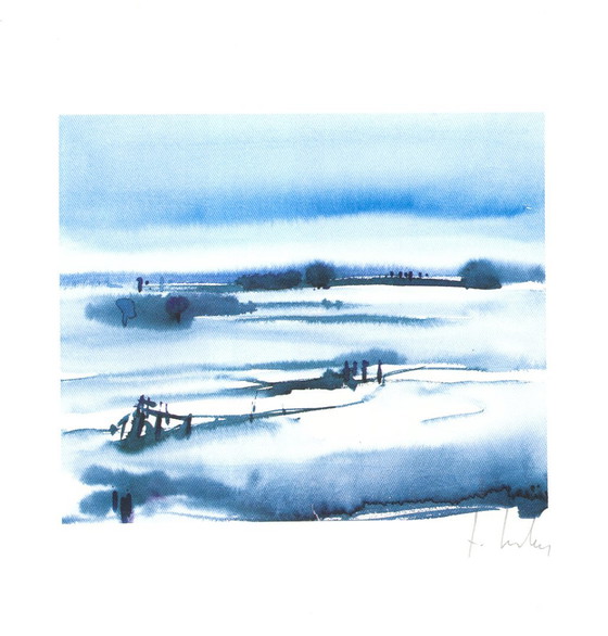 Winter landscape Color offset lithograph Hand signed Size: 15 x 14 cm Condition: In good condition