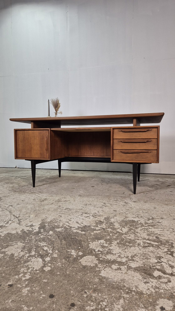 A masterpiece of German craftsmanship from the 1960s. This rare desk was designed by Heinrich Riestenpatt for RT Möbel, Germany. From the RT 200 series.