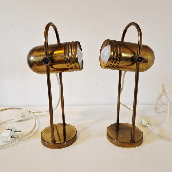Both lamps are in good working order and unpolished, with a beautiful aged look. The cables have a patina.