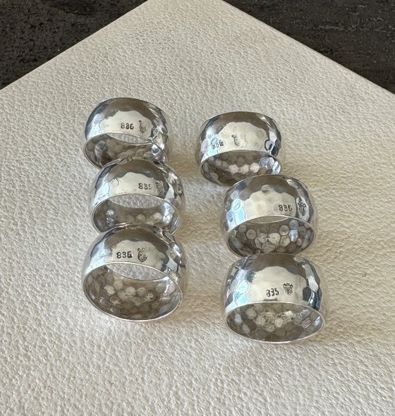 A unique find: six hammered handkerchief rings by the renowned goldsmith Hermann Bauer from Schwäbisch Gmünd, Germany.