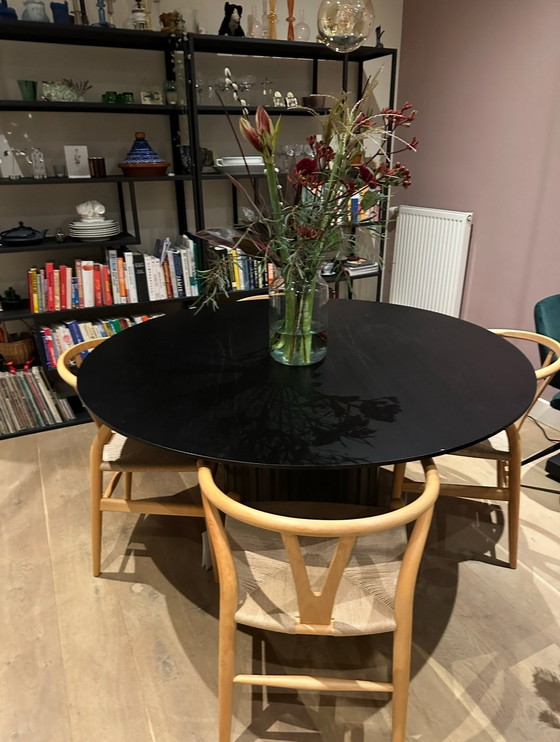 Sleek, beautiful and practical black dining table from HKliving for sale. In good condition, with a small scratch here and there from use.