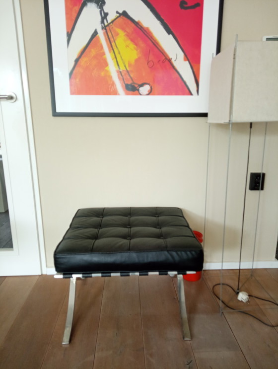 The Barcelona stool accompanies the Barcelona chair. Can also be added to your living room as a stand-alone object