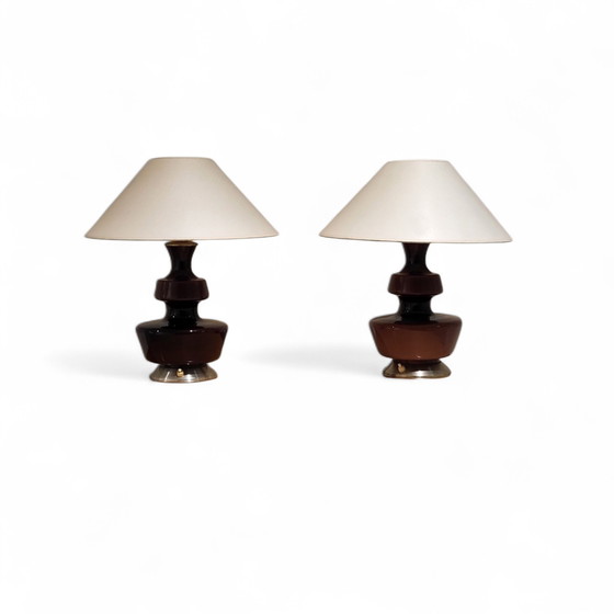 These beautiful Holmegaard table lamps exude a refined Mid-Century Modern aesthetic and are a perfect addition to any stylish interior. The combination of the warm purple glass and the cream-colored shade creates soft and inviting lighting.