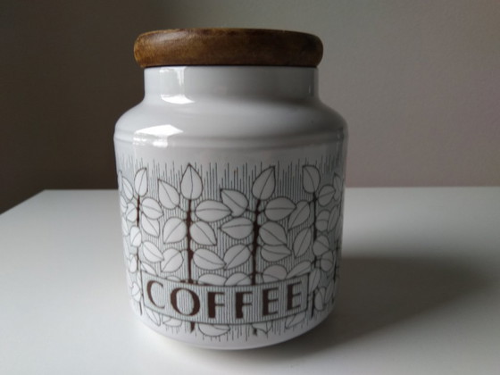 Charisma Hornsea England Coffee storage jar with wooden lid, lid in neat, used condition intact wooden lid needs some attention