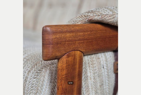 This sofa is a stunning example of Scandinavian mid-century design: clean lines, organic shapes, and refined wooden details create a warm, stylish look.