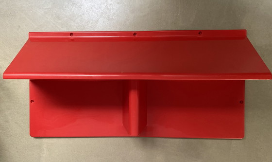 Rare vintage wall shelf from Ikea in bright red. The shelf has only slight signs of use and is otherwise in very good condition. It has a small material defect, see photo.