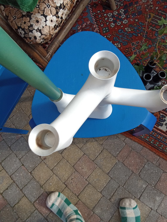 This vintage metal candlestick from Ikea adds a touch of retro charm to your interior. With its sleek white finish and unique design, it's a striking piece that's both functional and decorative. Perfect for creating a warm atmosphere in any room.