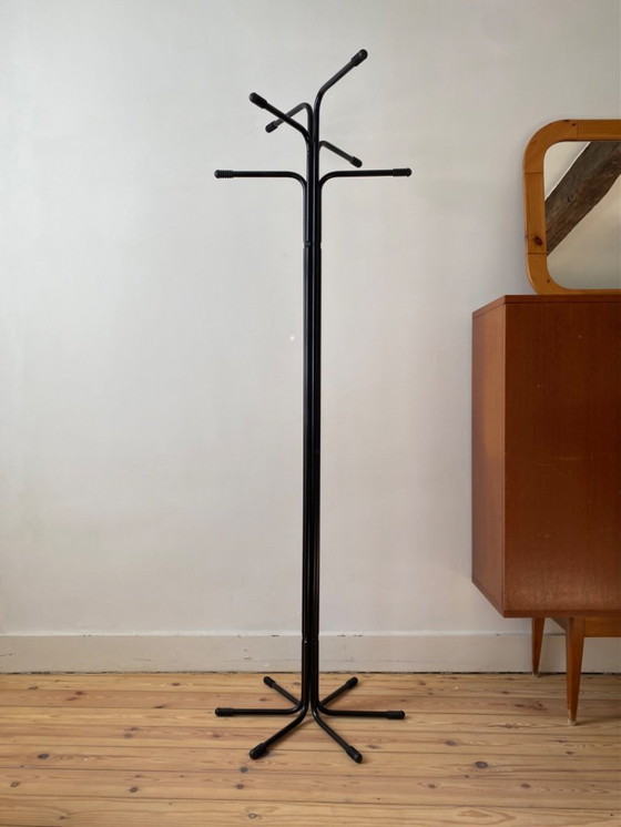 Vintage metal RIGG floor coat rack. Designed by Tord Bjorklund for IKEA in 1987. In good condition. Minor signs of wear on the bottom.