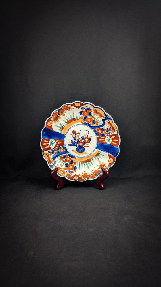 Discover this Imari porcelain plate with scalloped edges, adorned with a refined japanese decoration depicting various scenes of Japanese flora. It was created during the late Edo to Meiji period, at the end of the 19th century. Its authenticity and historic charm make it a unique piece, ideal for collectors or lovers of traditional Asian art.