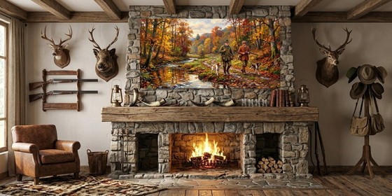 Keywords: Hunting scene, Hunter, Canvas, Frame, Interior decoration