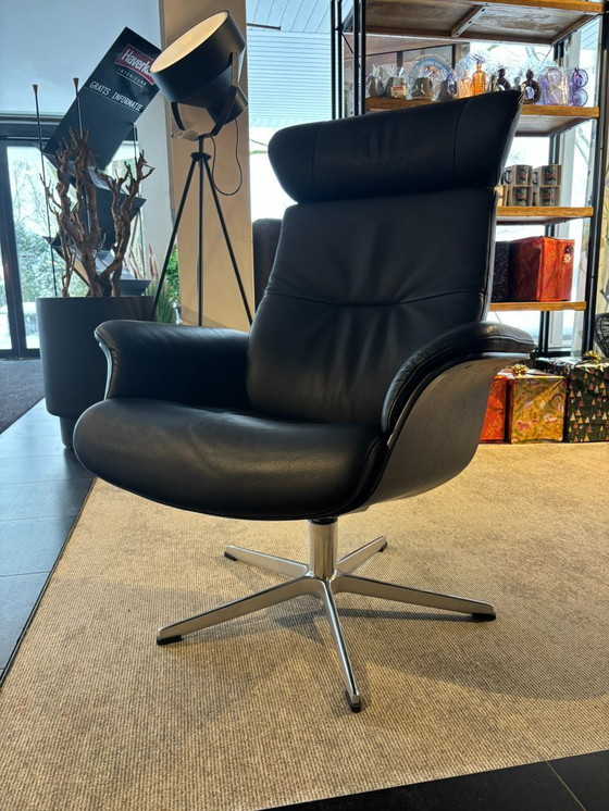 Experience ultimate comfort and style with the Conform Time Out armchair. This modern swivel armchair is a perfect addition to any contemporary living space. The premium black leather exudes elegance, while the metal base provides sturdy and durable support.