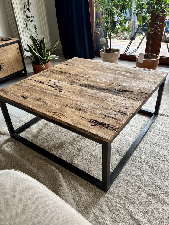Hello, We are getting rid of this coffee table due to moving :) The table is 120 cm wide and 40 cm high, the top is 100% Indian wood in a rough style. Can be found new in stores for 600 euros.