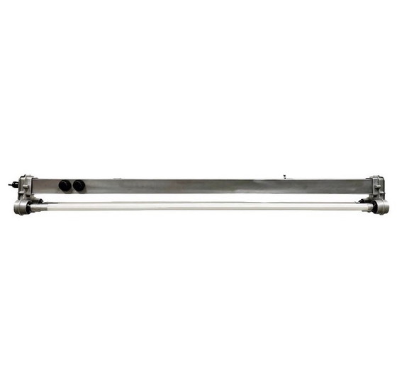 This industrial tube light was made by MSI "Gwarancja" Olsztyn in Poland during the 1970s. It is made of iron and an aluminium. New wire. The light requires two T8 120 cm LED light tubes. The weight of the lamp is 4 kg.The LED light tubes are not suplied with the light.