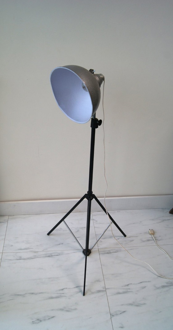 Industrial spotlight height adjustable go the from 1m20 to 1m75. The spot itself has a diameter of 26cm. In working and good condition