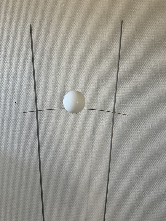 Illuminate your space with the Ingo Maurer floor lamp, a stunning example of modern design that blends elegance with practicality. This lamp features a minimalist aesthetic, highlighted by its sleek metal construction and a unique spherical light source that seems to float effortlessly.