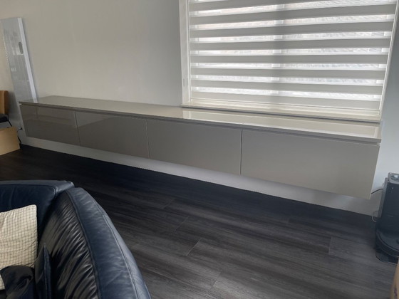 This impressive 4-meter-long Interlübke wall cabinet in taupe is a paragon of modern design and functionality. The sleek and minimalist design makes it a perfect addition to any contemporary living space.