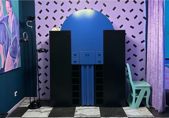 A very attractive bar cabinet, designed by Peter Maly for Interlübke – part of the "Duo" series – a design classic of German postmodernism.