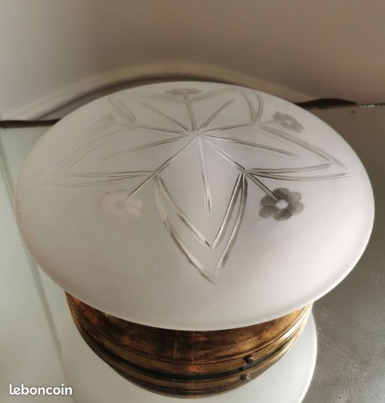 Art Deco wall or ceiling light from Italy in engraved glass and brass.