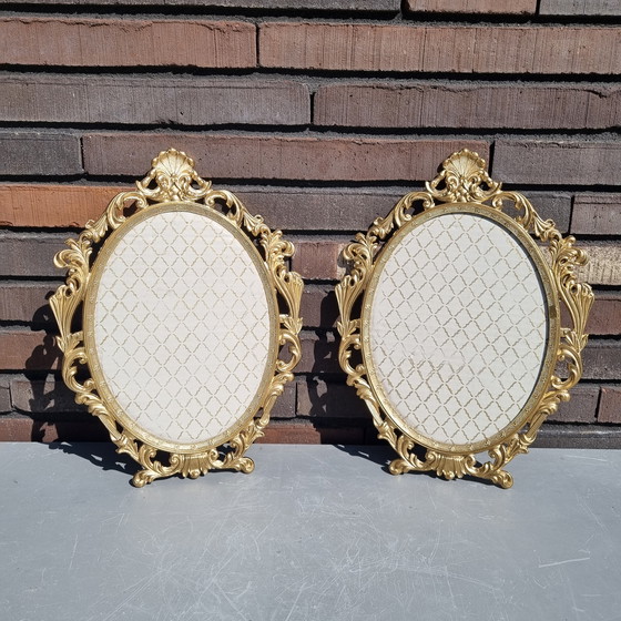 Two identical, gold-painted baroque metal frames from Italy.