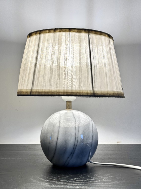 Italian grey (light) table lamp. Size with shade: 25x25x32h cm. Weight: 3.4 kg (heavy). Very good condition.