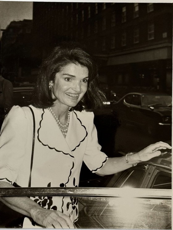 - Depicts Jackie Kennedy in a moment of elegance and style.