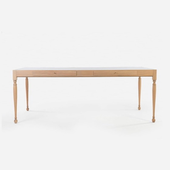 Brass top dining table by South African design studio James Mudge. Made of oak and a brass tabletop.