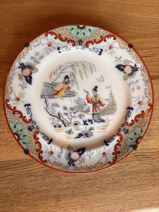 This antique decorative plate features the 'Timor' pattern, crafted by the renowned Petrus Regout factory in Maastricht. Its intricate design and historical significance make it a unique collector's item. Made late 19th century