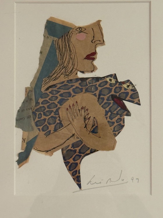 This is an original work made of paper specially torn into shape, combined with a mixed media technique. Very expressive yet understated.