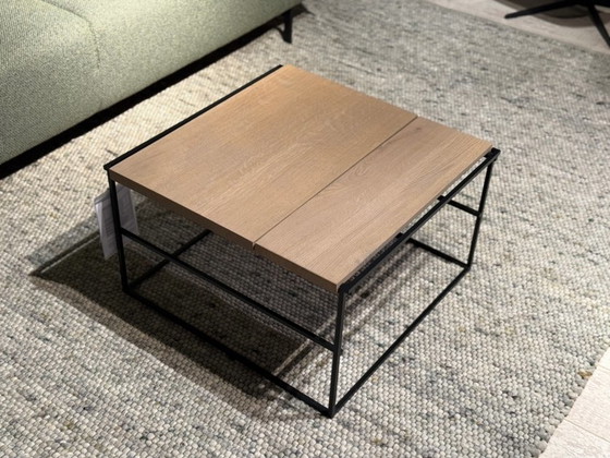 __ The Jukebox Coffee Table by Passe Partout features a slender metal frame and two oak shelves. This combination looks both warm and robust, and thanks to the open structure, the table maintains a spacious feel. The two oak shelves rest loosely in the frame and can be positioned as desired.